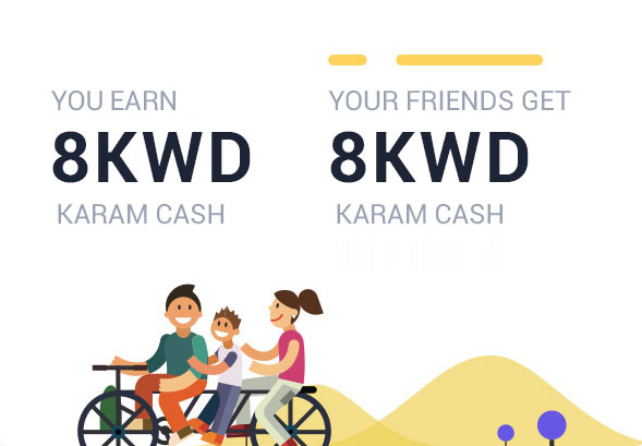 Invite Friends: Share your referral link, invite your friends to join Rehlat and earn Karam Cash when they book with Rehlat. They earn Karam Cash when they sign up.